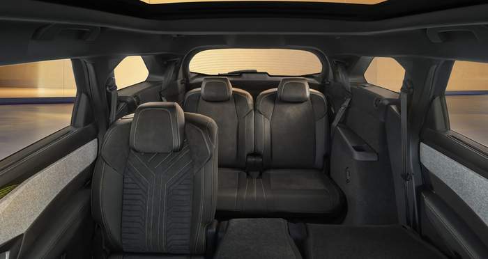 Об’єм багажника за умови встановленого третього ряду становить 348 літрів, якщо його скласти – 916 літрів, а якщо прибрати ще й другий ряд сидінь можна отримати максимальний корисний простір об’ємом 2 232 літри. Дизайн інтер’єру повністю відповідає стилю меншого Peugeot 3008.