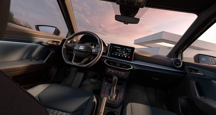 Для Arona тепер доступні й нові контрастні кольори даху. Асортимент коліс розширено — доступні нові 16–18-дюймові диски з привабливим малюнком. В інтер’єрі акцент зроблено на вищу якість матеріалів: м’які оздоблення, текстильні вставки у дверях, темна стеля та спортивні сидіння (у версії FR) підкреслюють молодіжний характер обох моделей.