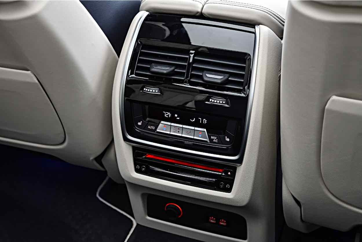 На центральній консолі бачимо кришталевий селектор автомата, поруч - шайбу мультимедійної системи, кнопки керування пневмопідвіскою та режимами їзди. В базовій комплектації - чотиризонний клімат-контроль, а за доплату пропонується окрема зона для третього ряду. В базове оснащення входять шкіряні крісла, передні мають ще й електропривід та панорамний дах. Так само не треба доплачувати за світлодіодні фари, пневматичну підвіску і 20-дюймові колеса. За 21-й та 22-й дюйм, а також лазерну оптику, доведеться платити окремо. Серед опцій - камери кругового огляду, які здатні надсилати картинку на мобільний телефон, а також система запам’ятовування останніх 50 метрів дороги, яка потім в режимі автопілотування дозволяє виїхати задом фактично по власних слідах. Багато знайомого за новим BMW X5? Справді, якщо зовні Х7 суттєво відрізняється від Х5, то з точки зору техніки багато в чому повторює молодшого брата.