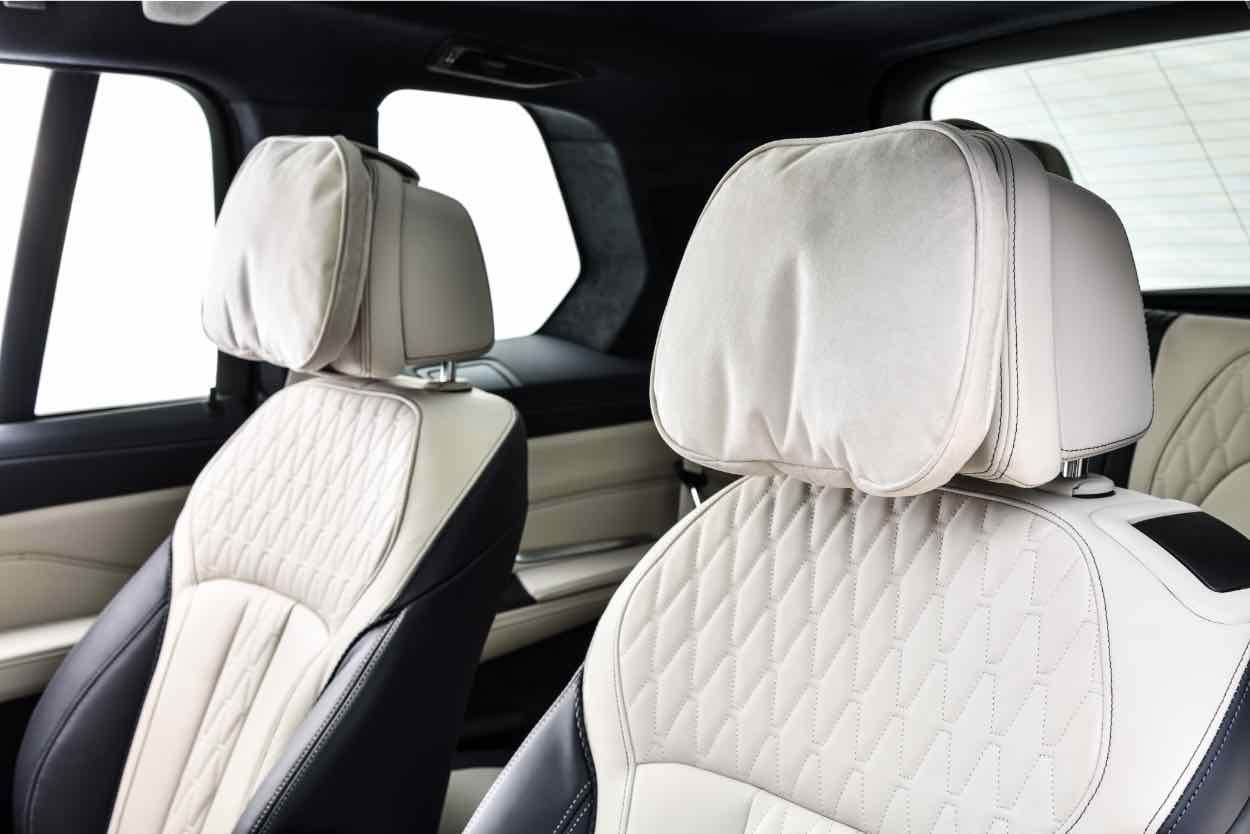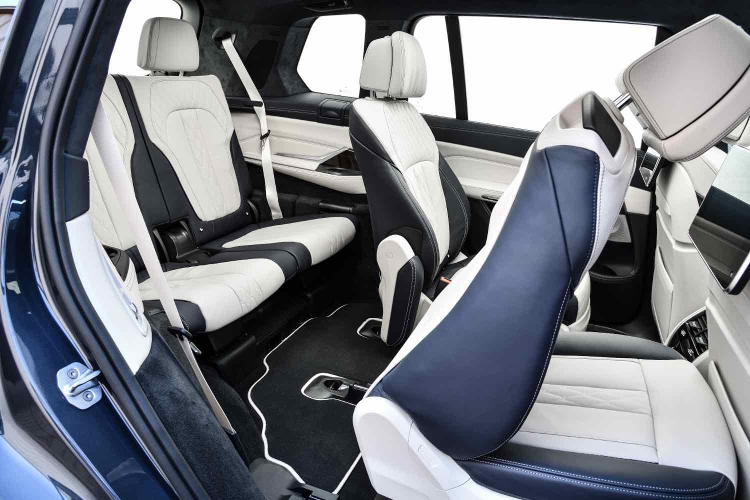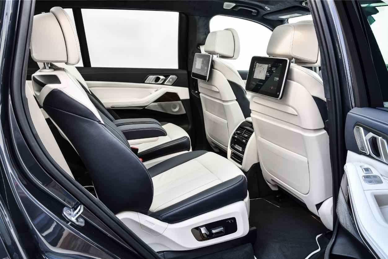 В довжину Х7 такий самий, як і седан “сьомої” серії, але значно вищий. Тому вважається найбільшим баварцем. Бо якщо порівнювати із “ікс п’ятим”, то новачок став довшим на 220 мм і витягнувся до позначки 5151 мм. При цьому колісна база виросла на 130 мм до 3105 мм. Зрозуміло, що увесь цей “плюс” пішов на користь заднім пасажирам третього ряду, де тепер спокійно може розміститися двоє дорослих. Цікаво, що в якості базової комплектації пропонують 7 місць і тільки за доплату - 6 окремих крісел. Тоді в пасажирів з'являється більше місця на рівні плечей. На другому ряду просторо, наче в лімузині.