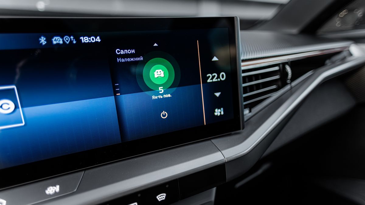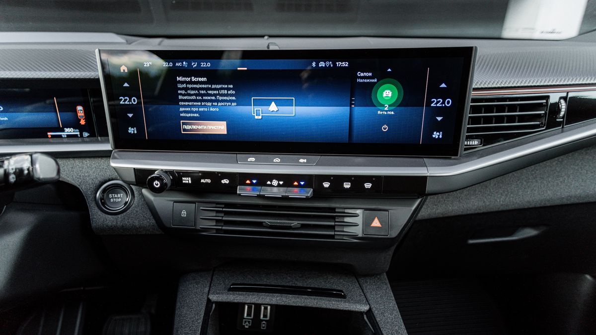 В «технопакеті» також – камера 360°, обігрів лобового скла, системи попередження про поперечний рух позаду та допомоги при зміні смуги руху. А ще авто визначає якість повітря – попереджає, якщо сильно забруднене. Що робити в такому випадку? Їхати звідси якнайдалі.