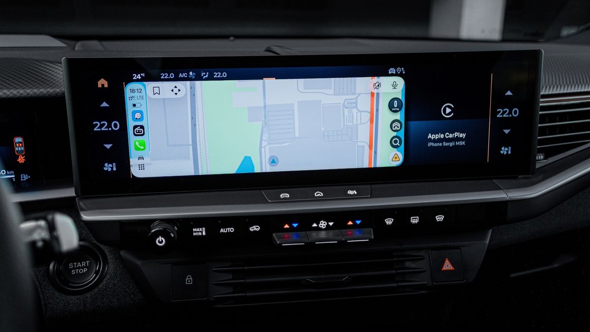 У версії GS, яка позиціонується як «Технологічна» – два здоровенних екрани (широкий 10-дюймовий перед водієм та прямокутний 16-дюймовий в центрі), кермо зручне, все на своїх місцях. У тестовому авто ще пакет «Техно плюс», який легко відрізнити за величезними цифрами проєкційного дисплея на лобовому склі. Мабуть, найбільші цифри швидкості з тих, що мені доводилось бачити на сучасних авто. Окрім звичного спідометра та знаків обмеження, які зчитує камера, перед очима водія висвічуються ще напрямки поворотів від навігації Google-карт (з Waze чомусь не працює).