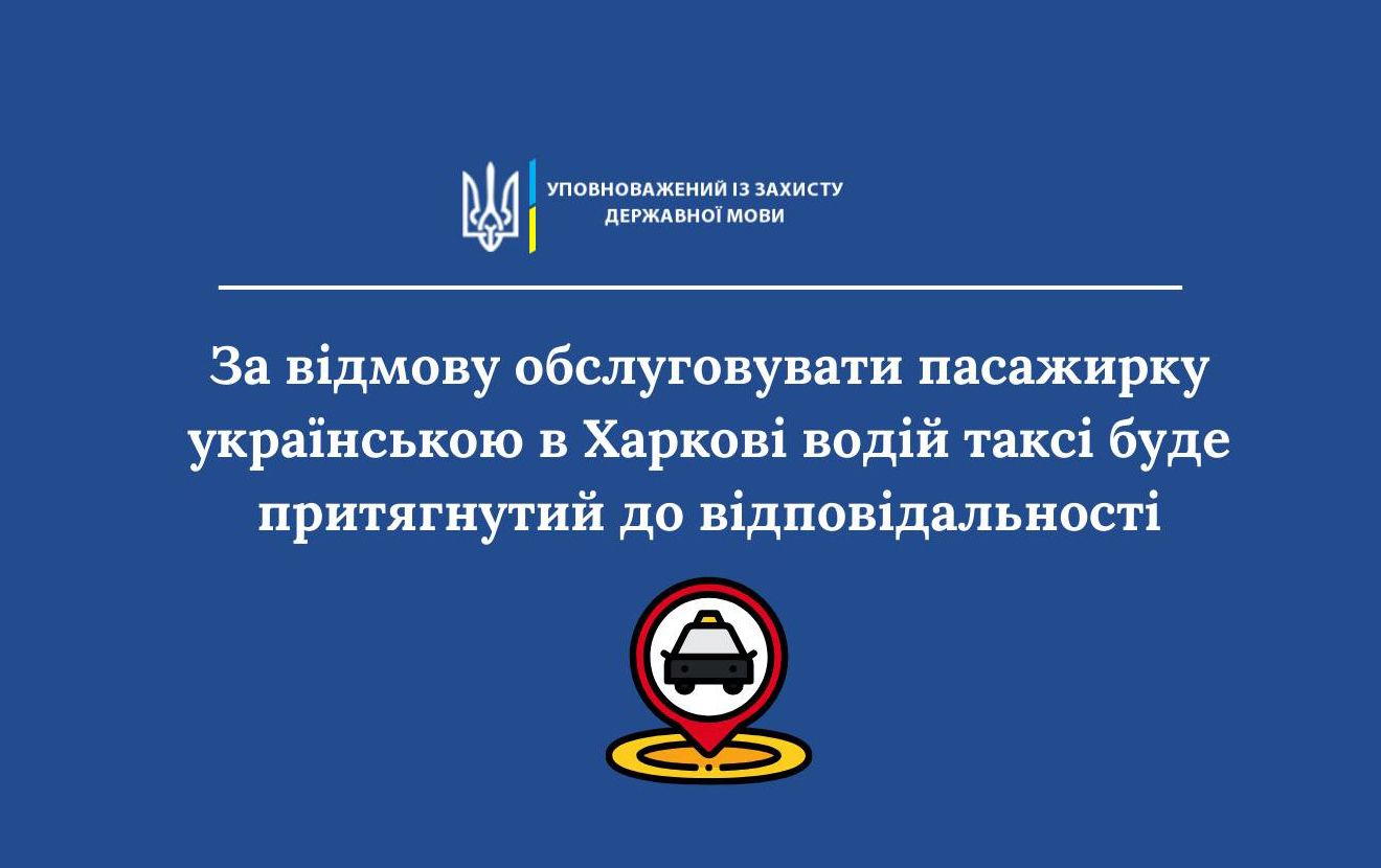 Там водій таксі у грубій зневажливій формі відмовився обслуговувати пасажирку державною мовою, що глибоко обурило клієнтку. Уповноважена із захисту державної мови Олена Івановська наголосила, в цьому випадку уникнути покарання не вдасться.