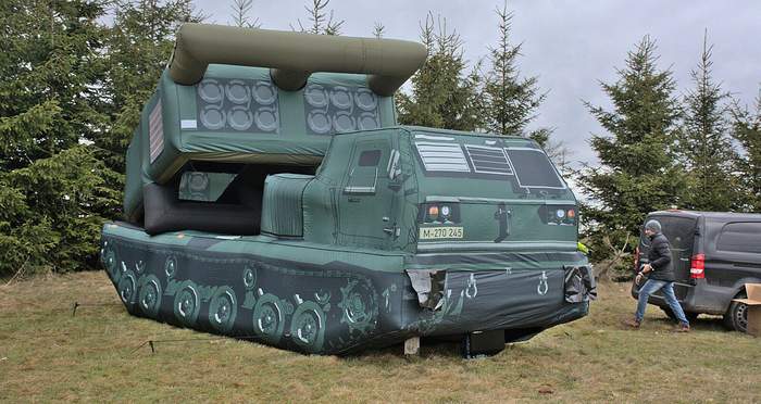 Варто зазначити, що надувні макети танків, систем ППО та інших бойових, інженерних машин масово почали надходити до України лише після початку повномасштабної війни. Муляжі в основному були зроблені й закуплені в Чехії.