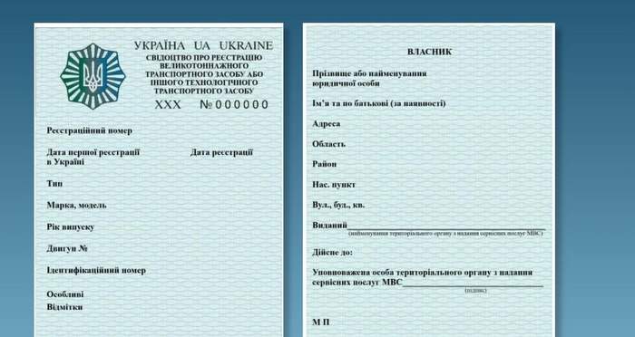 - Свідоцтво на великотоннажну або іншу спеціальну техніку.