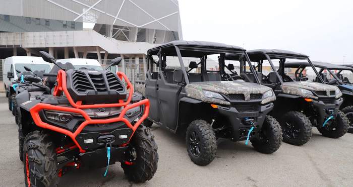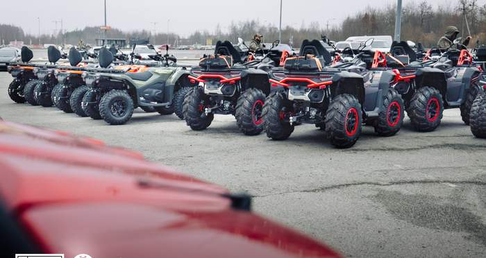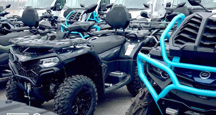 На передньому плані потужний квадроцикл (ATV) CFMOTO CFORCE 1000, а далі мотовсюдиходи типу "side-by-side" (UTV) Фото: Львівська ОВА